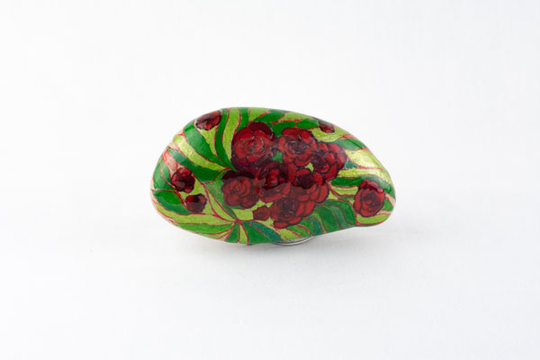 Piedra Rosas Rojas Hojas Verdes Metalizadas