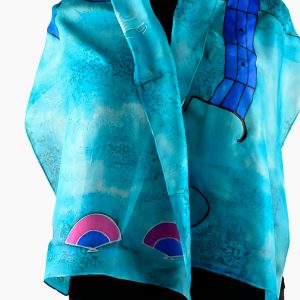 Foulard guitarra azul con abanicos
